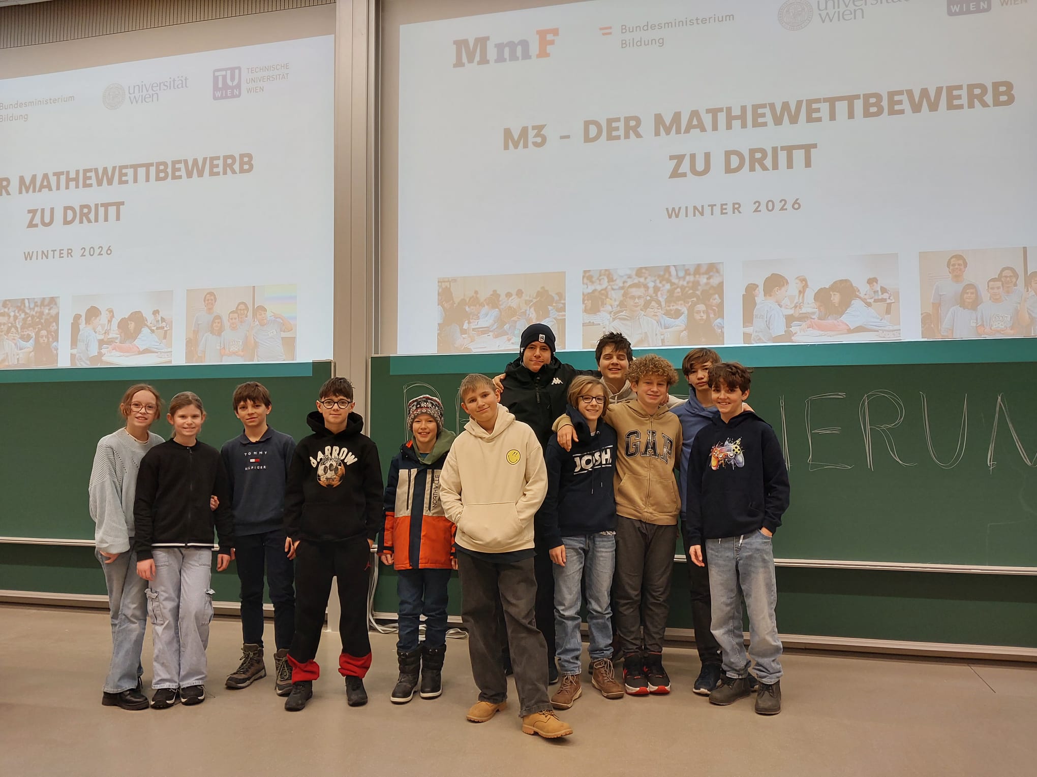 Am Samstag, 24. Jänner, fand der Mathematik-Teamwettbewerb M3 statt. Der Wettbewerb richtet sich an Schülerinnen und Schüler der 1. bis 4. Klassen und wird im Teamformat mit jeweils drei Personen ausgetragen. Organisiert wird M3 vom Projekt Mathematik macht Freu(n)de (MmF).
