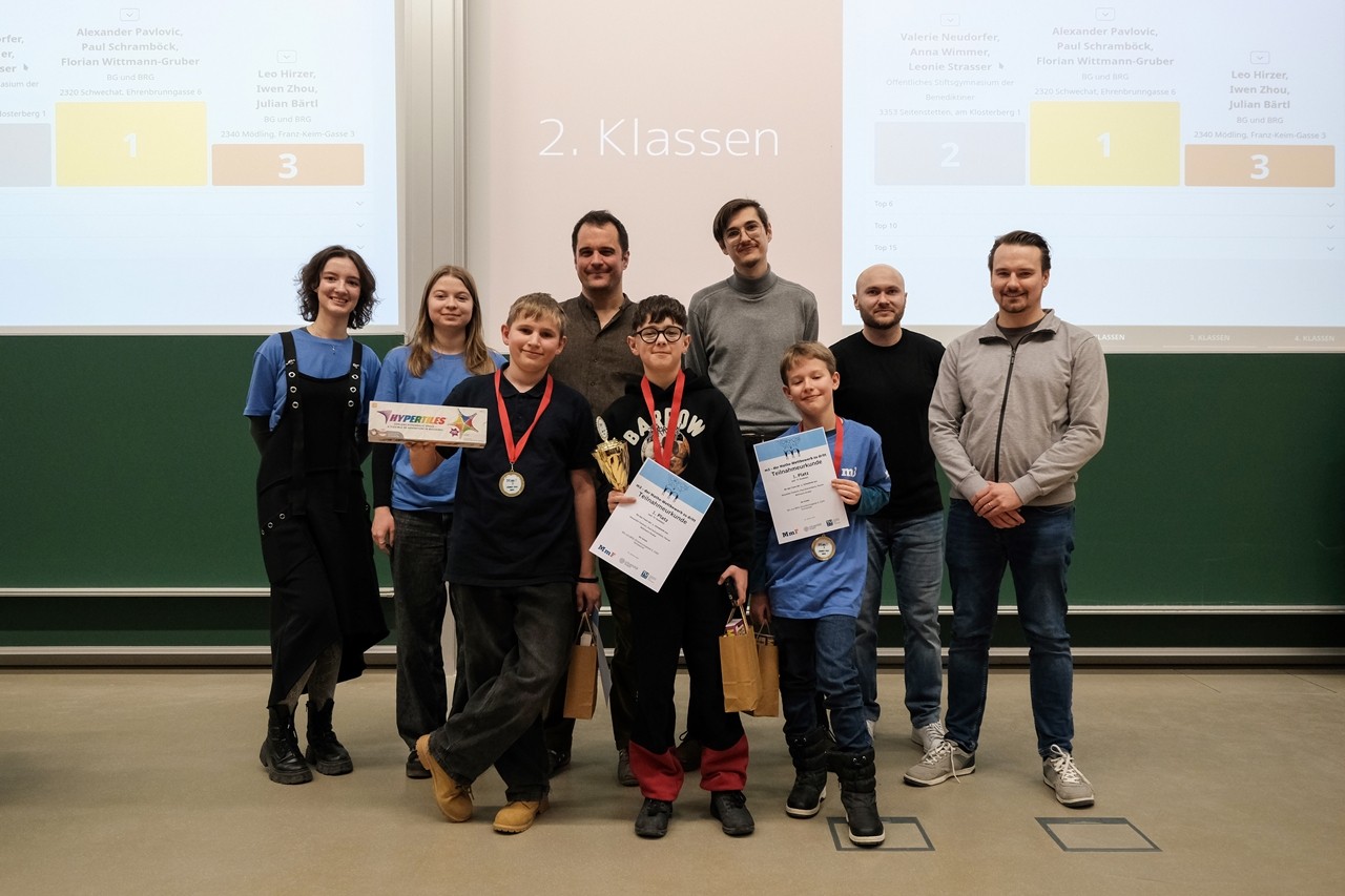 Das BRG Schwechat war mit vier Teams vertreten und konnte insgesamt sehr erfreuliche Ergebnisse erzielen. Besonders herausragend war die Leistung des Teams der zweiten Klasse, das sensationell den ersten Platz erreichte und damit den Erfolg aus dem Vorjahr wiederholen konnte. Auch die übrigen Teams unserer Schule zeigten großes mathematisches Können und erreichten starke Platzierungen im soliden Mittelfeld.